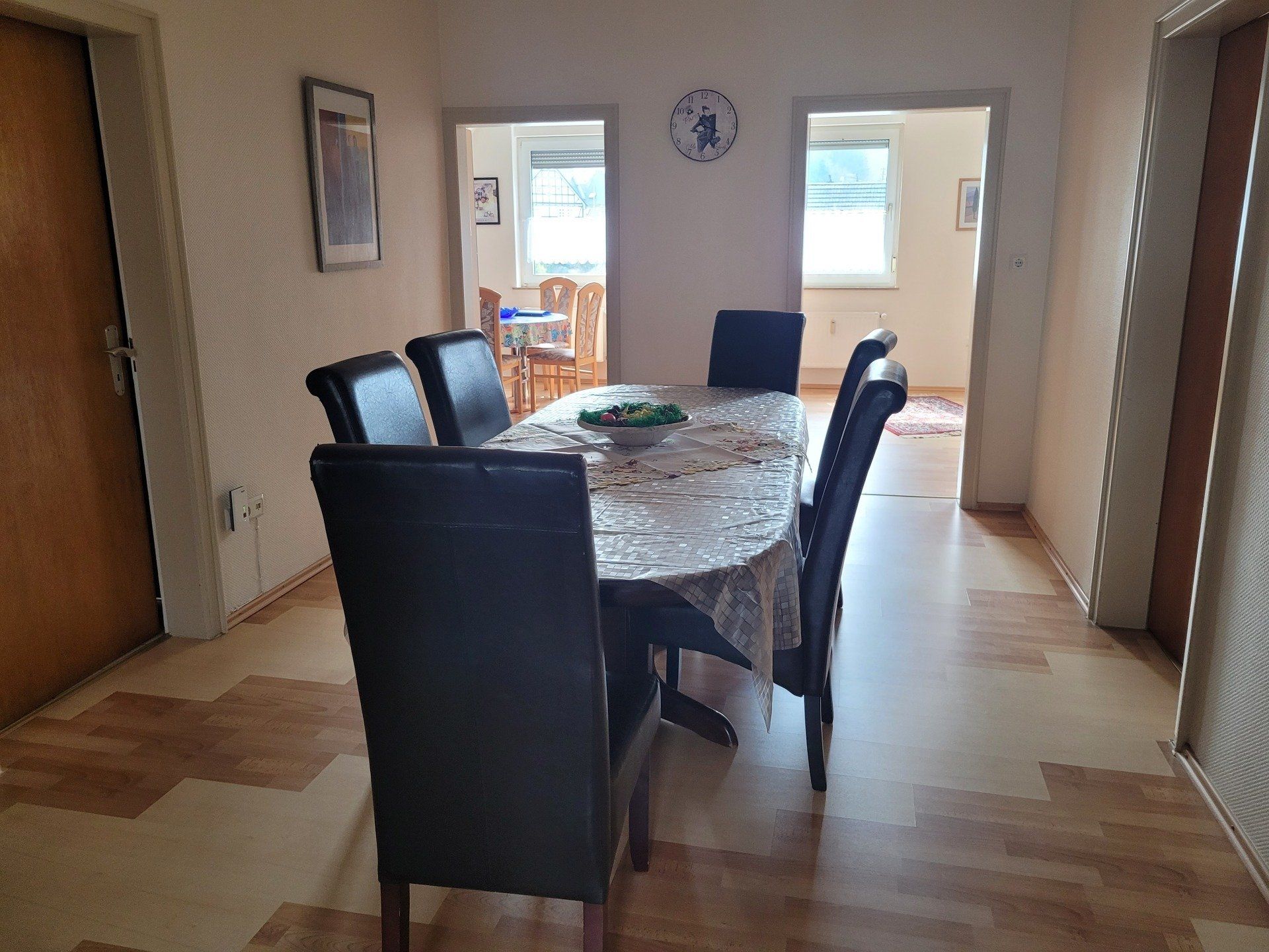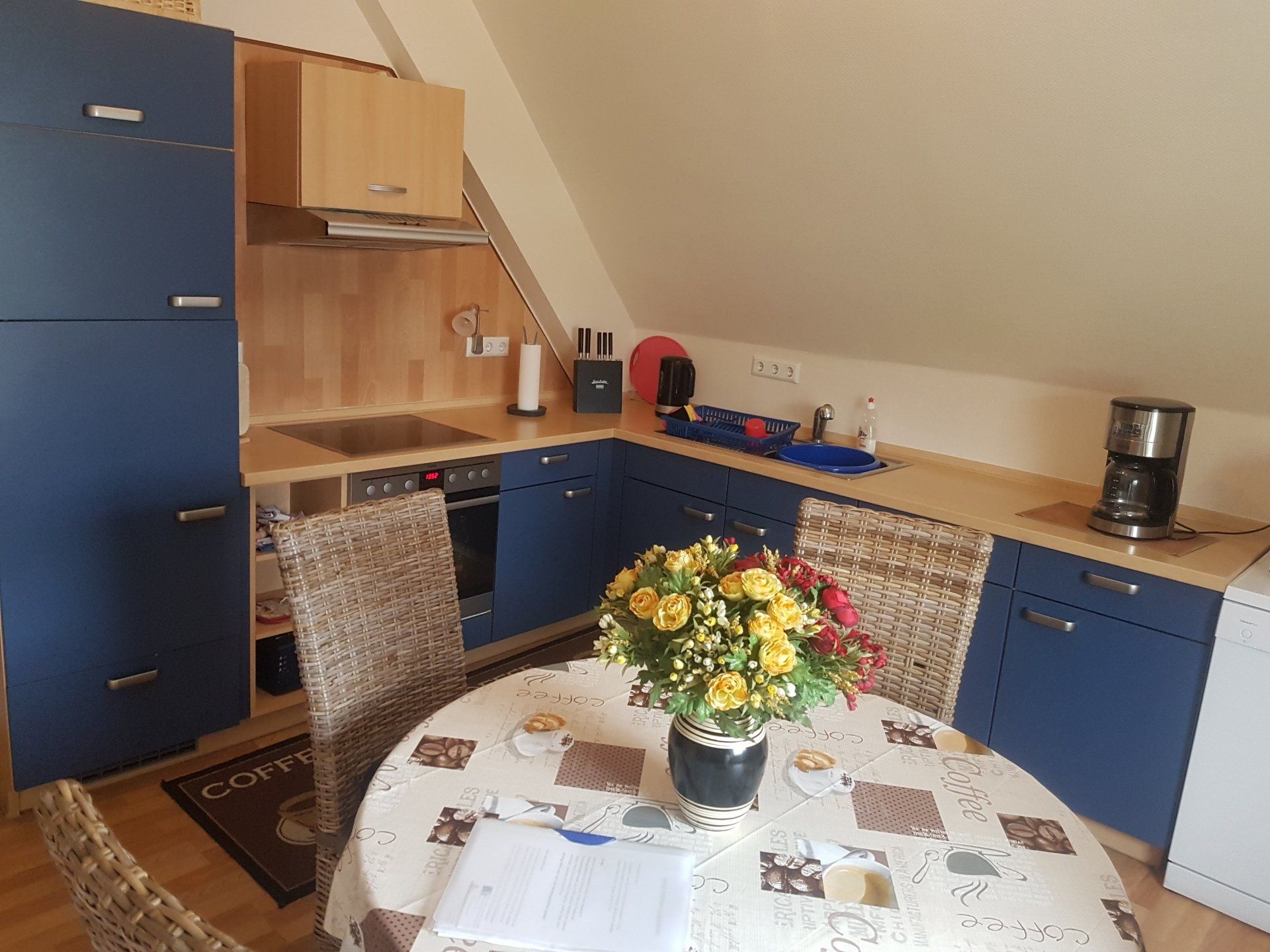 Die gut ausgestattete Küche bietet alles was man zum Kochen benötigt. Das große Wohnzimmer verfügt über Sat-TV. Das Kernstück ist sicherlich das Esszimmer mit dem großen Tisch. Etwas zusammengerückt haben hier schon 14 Personen Platz gefunden. Eng ist halt gemütlich:-)). Das finden auch unsere Gäste!!!!!!!!!!