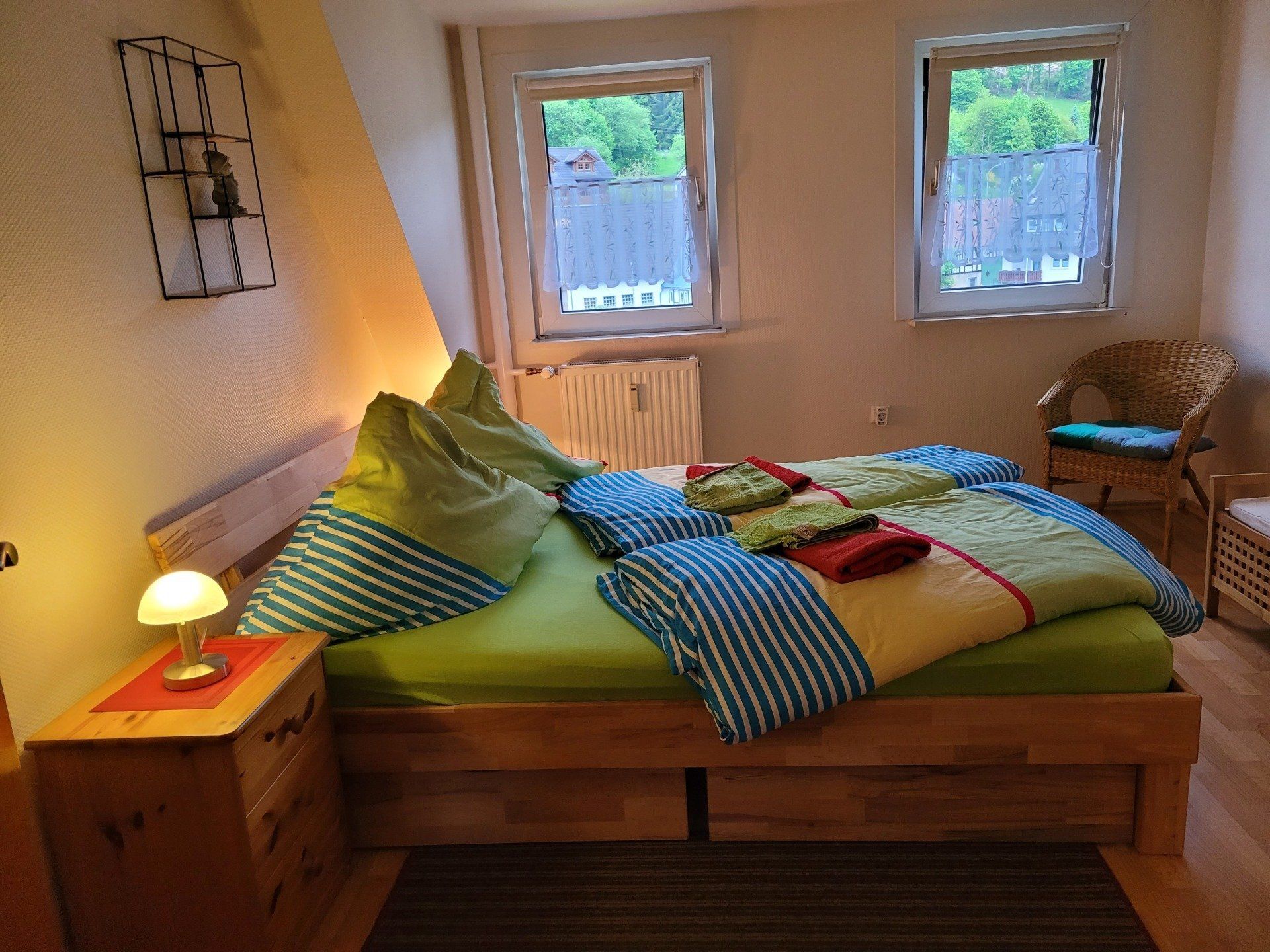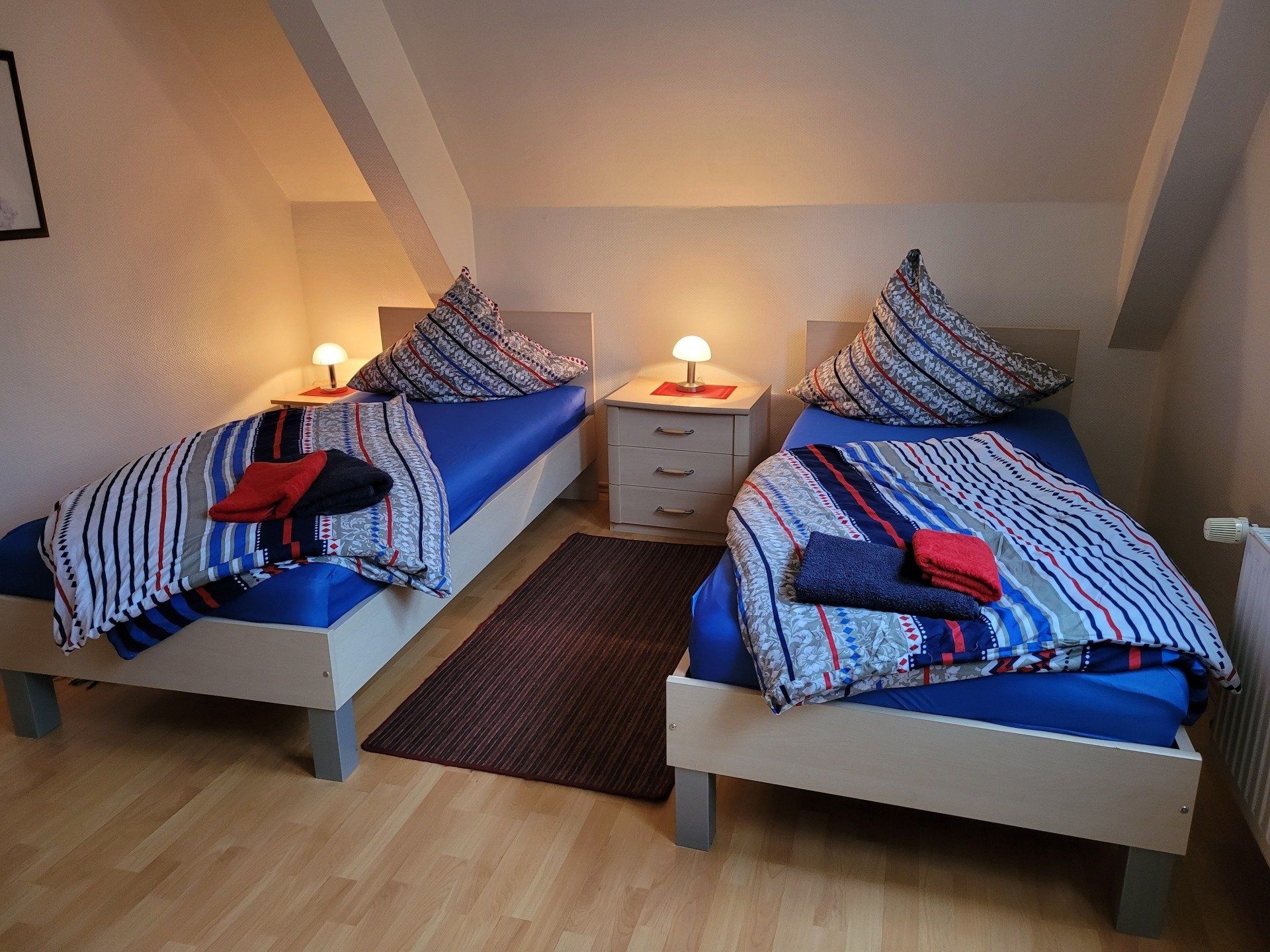 Mit einer Gesamtfläche von 96 qm ist diese Wohnung die Kleinere der beiden Wohnungen. Nichts desto trotz findet man auch hier 4 gemütliche Schlafzimmer mit insgesamt 6 Einzelbetten. Ein "Ersatzbett" und die Möglichkeit die 140er Futonbetten auch mal zu zweit zu nutzen, ermöglicht eine Belegung mit 8 Personen. Hier ist eine Absprache mit uns erwünscht.